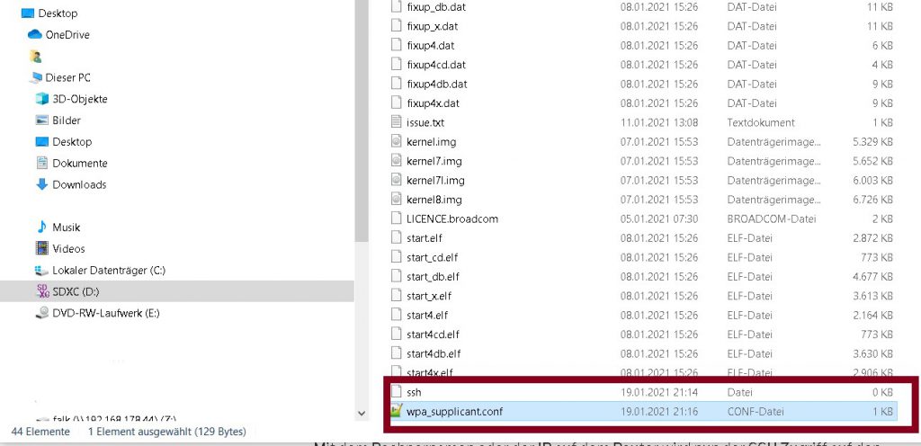 Nach dem diese beiden Schritte durchgeführt wurden, sollte die SD Card so aussehen: