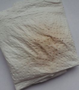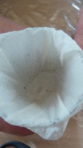Also wird gefiltert und mal sehen wieviel im Filter hängen bleibt. Als Filter verwenden erst einmal ein handelsübliches Küchenpapier.